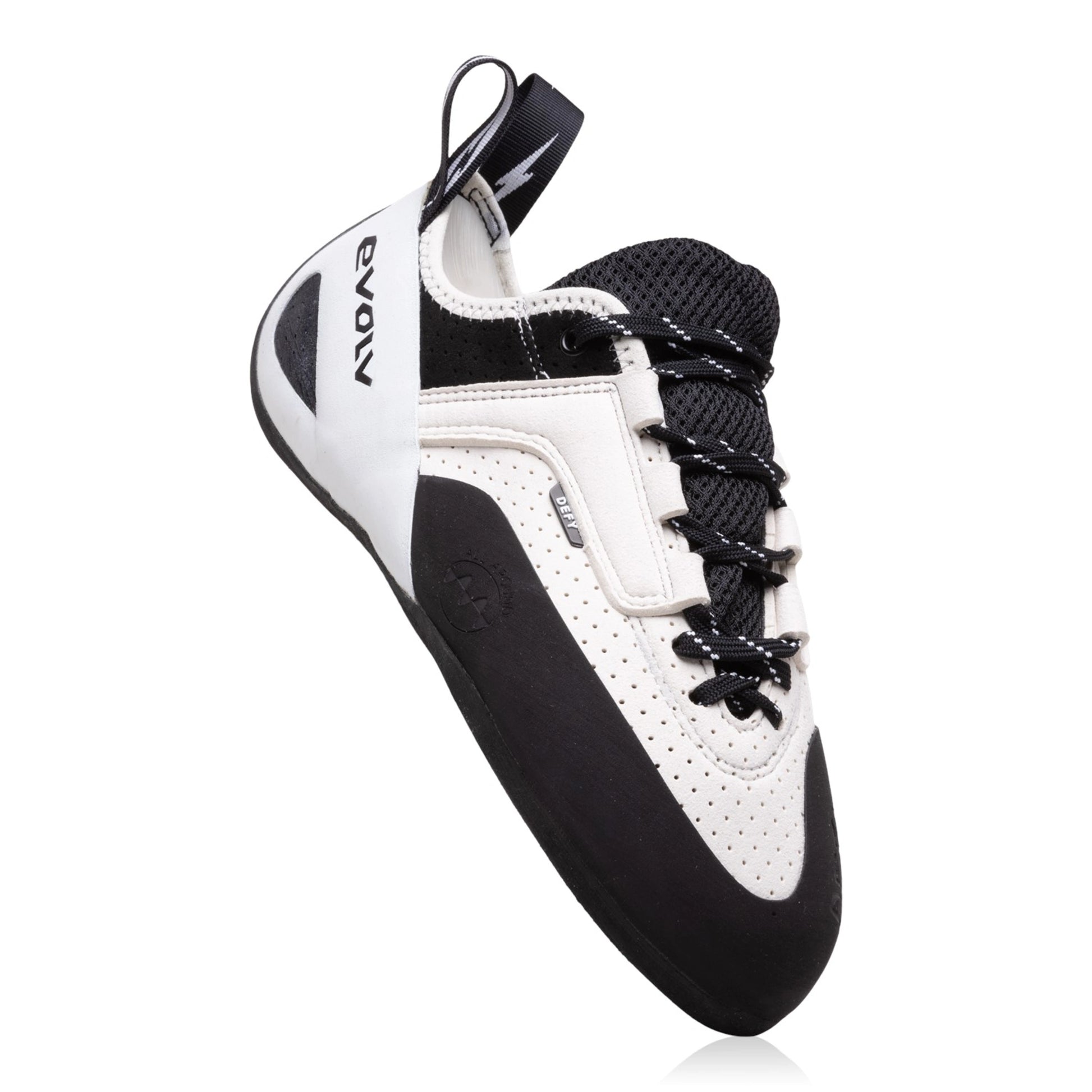 The most advanced entry level shoe on the market. Slight camber and more asymmetric fit than traditional entry level shoes. Creates a more precise connection between climber and hold. Strap version softer than lace up for increased sensitivity. PSR 4. The LV model has 6% lower overall volume than Defy for narrower feet or a snugger, higher performance fit.