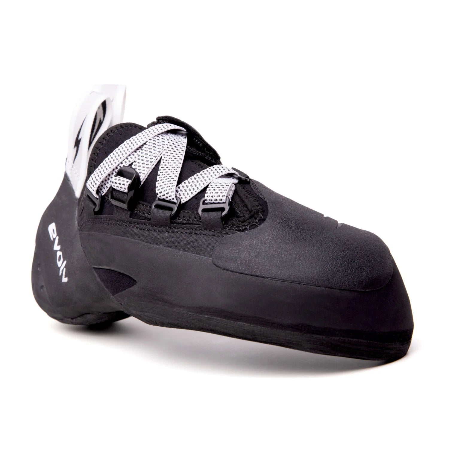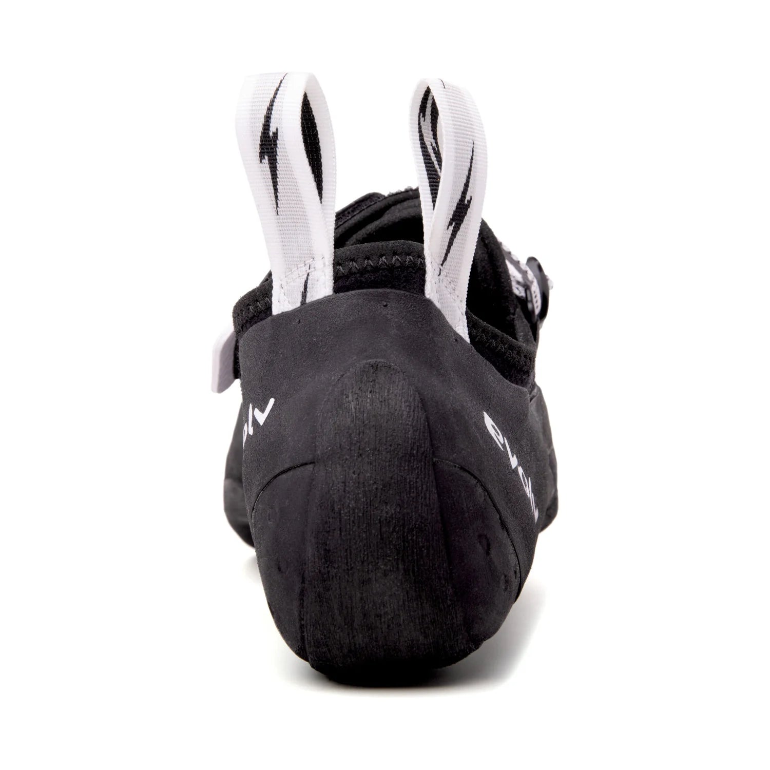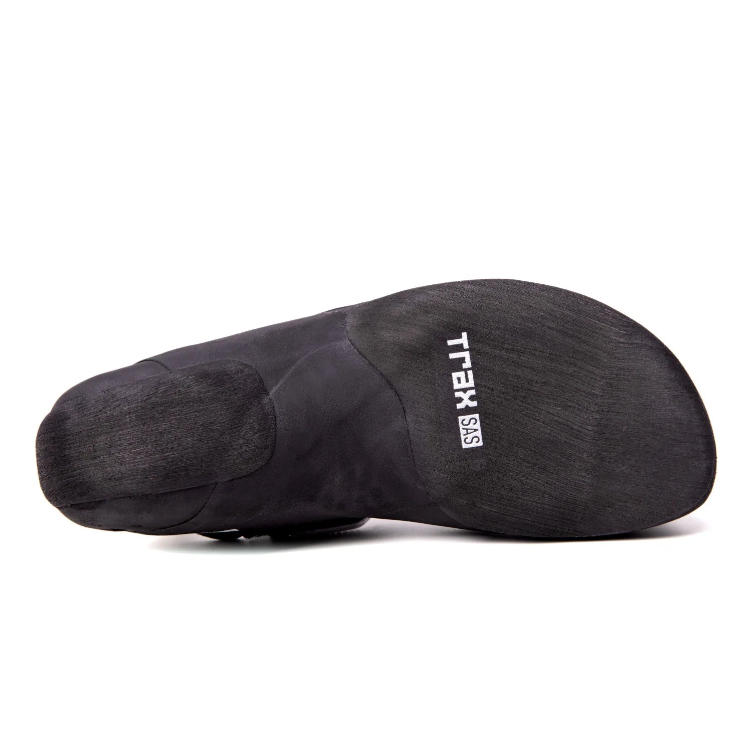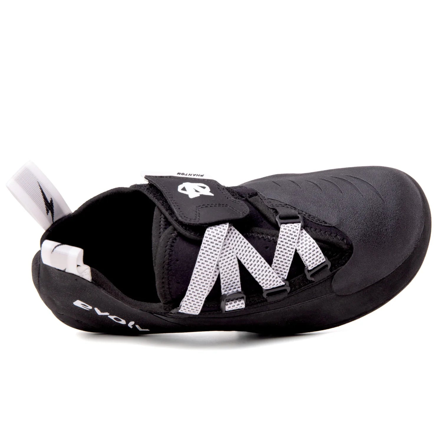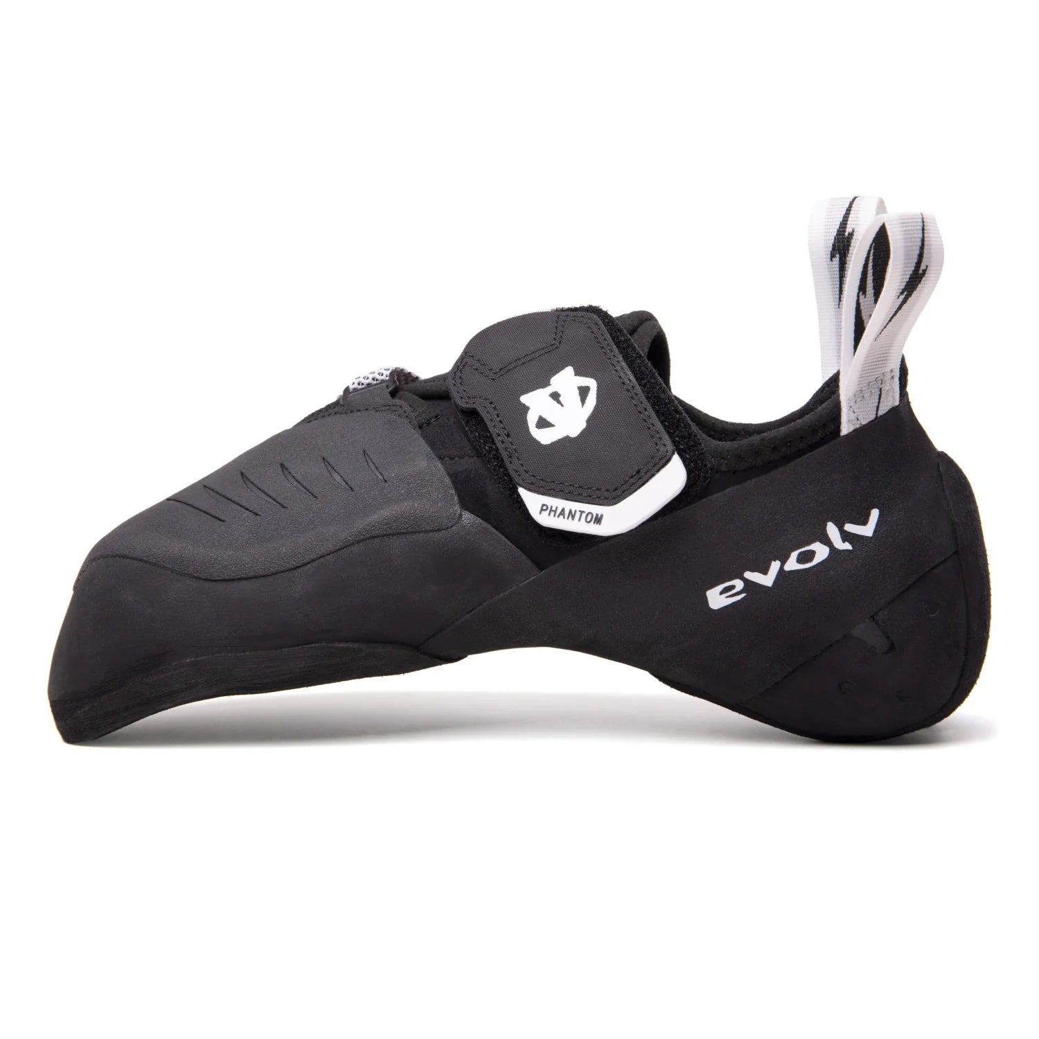 The Phantom was designed for the technical climber who needs equal sensitivity and power from their climbing shoe. The vegan synthetic upper built on an aggressively profiled last will ensure your foot is always in a power position and that the shoe will not stretch too much over time. The Phantom features two midsoles that act in unison. The first midsole is the avt (abridged variable thickness) midsole, which is an abridged variable thickness plastic midsole that is thicker in the forefoot and thins out to the edges of your toes to provide power and sensitivity. The avt midsole is cut out under your big toe which increases sensitivity and helps find those delicate foot placements. the second midsole is the tps+ (tension power system plus) which is a rubber midsole that is tensioned and bonded under your toes to always keep a little downturn in the shoe, even after it is broken in and also tensioned through the arch of your foot to eliminate dead space and provide a snug fit. the dark spine s(sensitive) heel midsole provides enough rigidity to help drive power through your foot to the toebox while remaining sensitive enough to feel small features. this shoe was designed with intent by daniel woods and tested rigorously in conjunction with Daniel Woods and Paul Robinson.