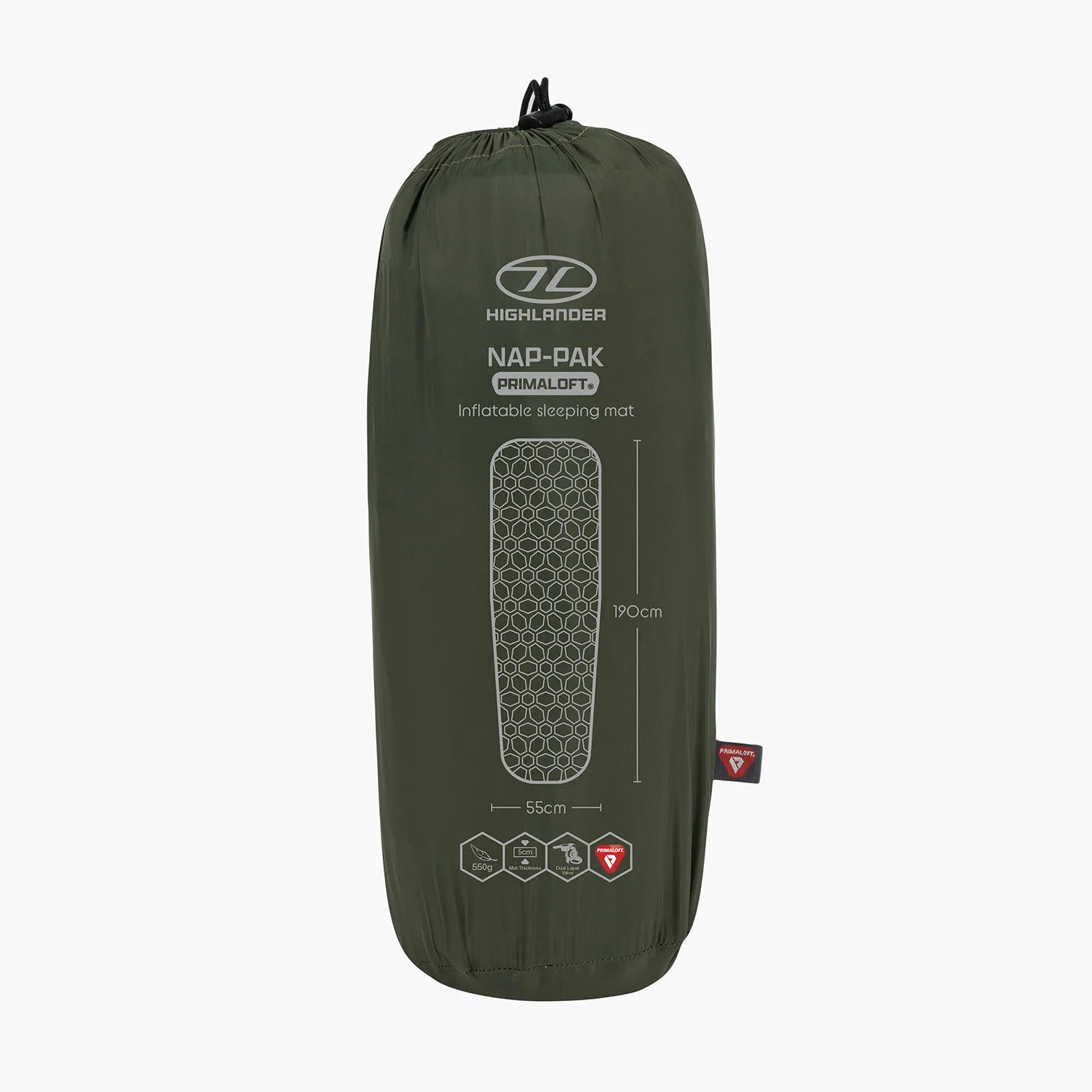 Stay warm by reducing heat loss between your body and the ground and get a great night’s sleep with the NAP-PAK inflatable sleeping mat with Primaloft® inner fill. This small packed-volume mat is durable, constructed of ripstop nylon, and ultralight (550g) without compromising comfort and warmth by using air cell baffles to provide a more even dispersion of pressure across the mattress for a comfortable nights sleep.