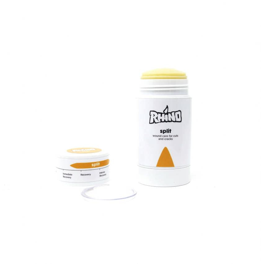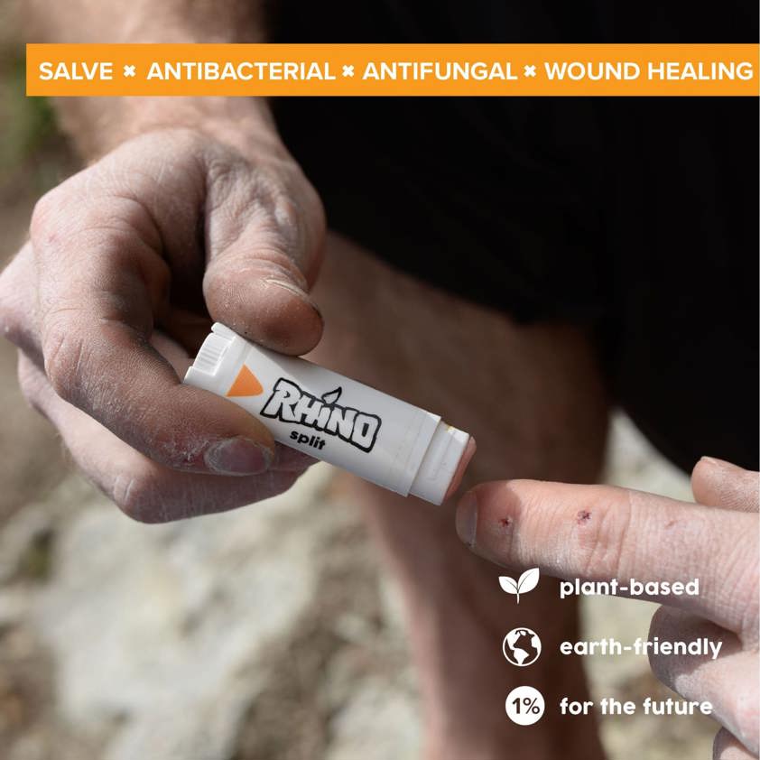 Rhino Skin Split and Split+ are powerful, plant-based salves designed to treat cuts, cracks, flappers, and fingertip splits — helping climbers get back on the wall faster. With antibacterial, antifungal, and wound-healing properties, this formula protects damaged skin while creating the ideal environment for recovery.