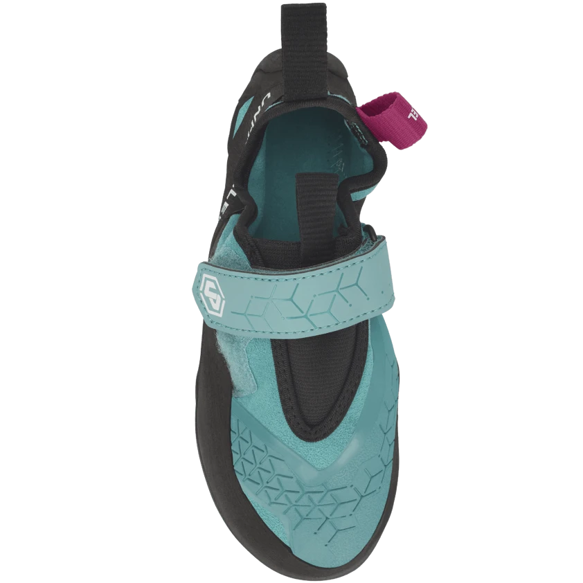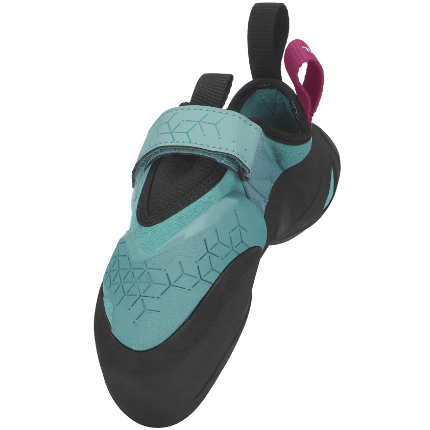 The Flagship is all-encompassing, from pinpoint precision footwork on high-grade, outdoor sport routes, to low-percentage toe hooks in competition finals. This new women’s version has been designed for women and low-volume climbers, with a 3D molded toe cap and heel outsole in VC Pro high-friction rubber compounds. The front outsole is made from die-cut RS rubber. By separating the outsole on the low-volume fit, we’ve achieved maximum stiffness/ridigity and power to the toe while maintaining sensitivity and feel to the rest of the foot without extra volume. This allows for micro body adjustments without transferring movement to the toe. This is a true women-specific, high-performance, low-volume shoe.